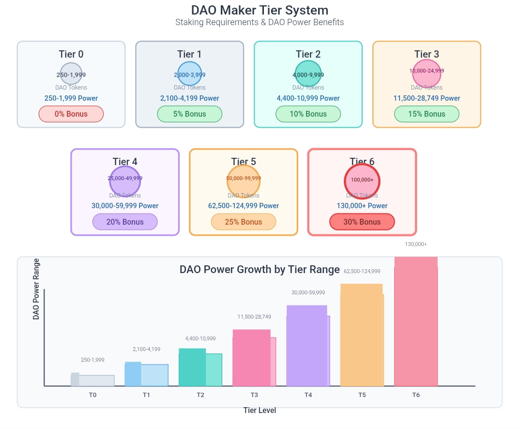 DAO Maker is well known for its token launch mechanism known as Strong Holder Offerings (SHOs), where DAO token stakers earn DAO Power based on their stake tier, which gives them purchasing power in any IDO held on the platform.