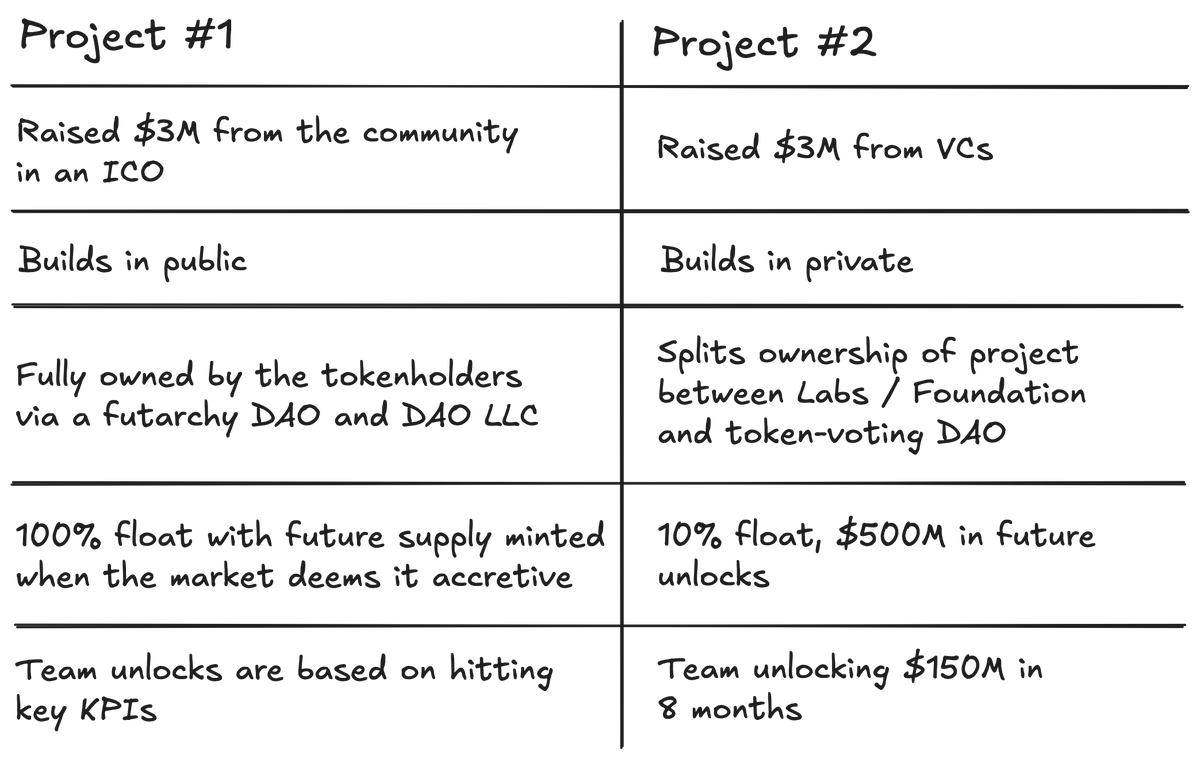 Fundraising in crypto today uses vesting schedules and pre-allocations to isolate core investors (token holders) from the decision-making of the platform, which causes huge downsides for them, resulting in token price decline.